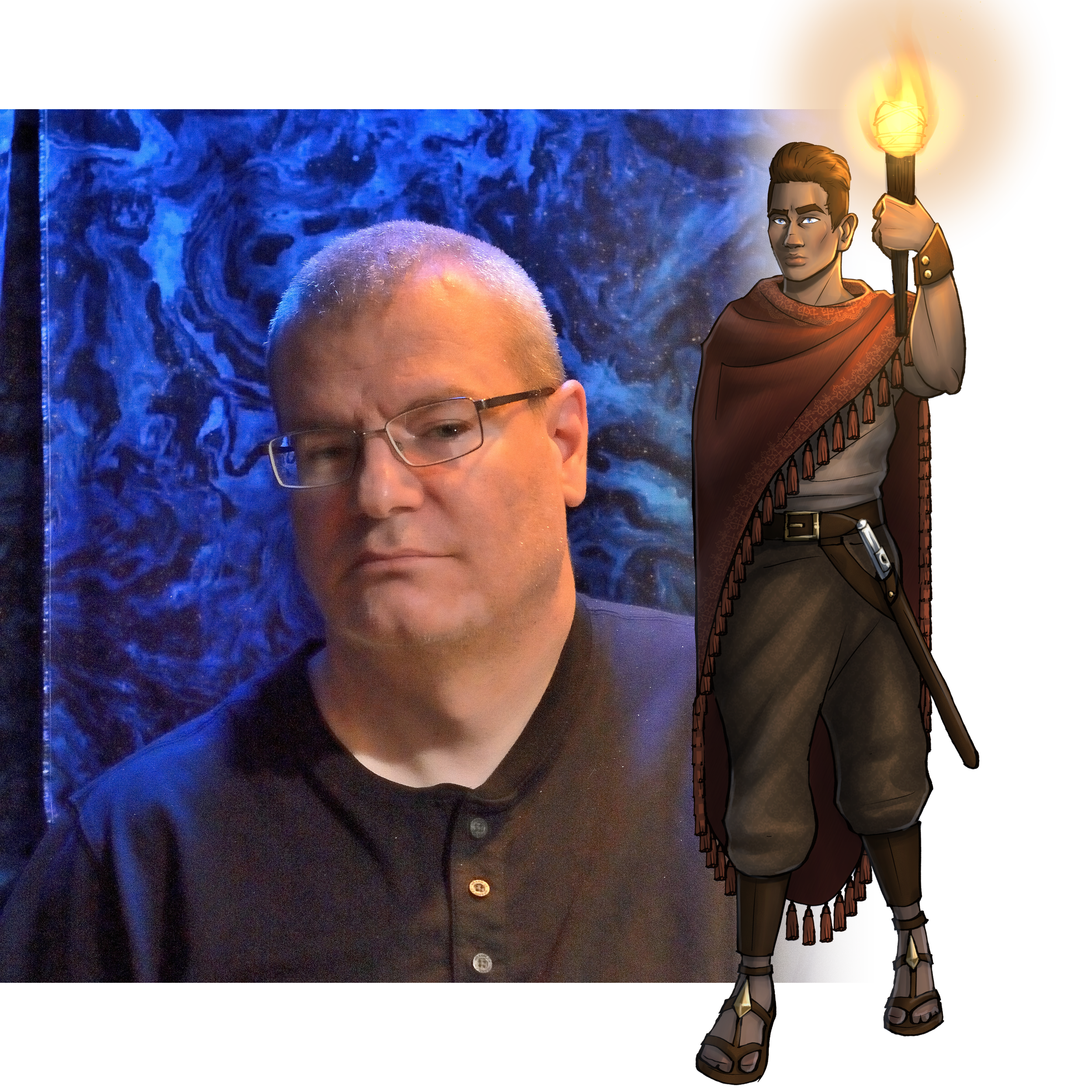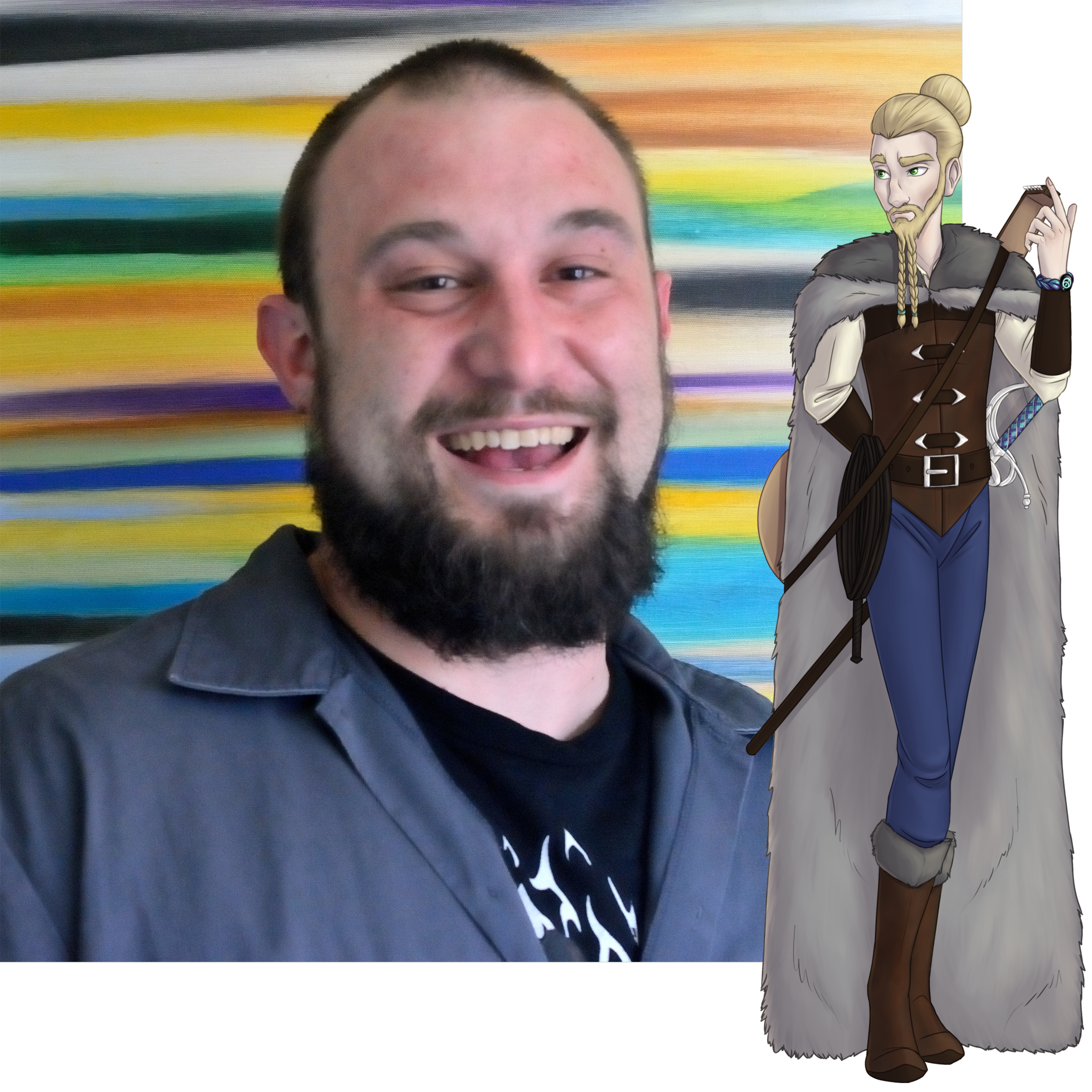 Yet another career techie, Kevin is grandfathered into the TTRPG world by family legacy, not dissimilar to what Kol Vottisson, the human Bard, strives to achieve with their epic-in-progress. A grad student of the Bardic University, Kol touts a rainbow bean badge that may open doors, behind which, the juiciest scoop may be found.