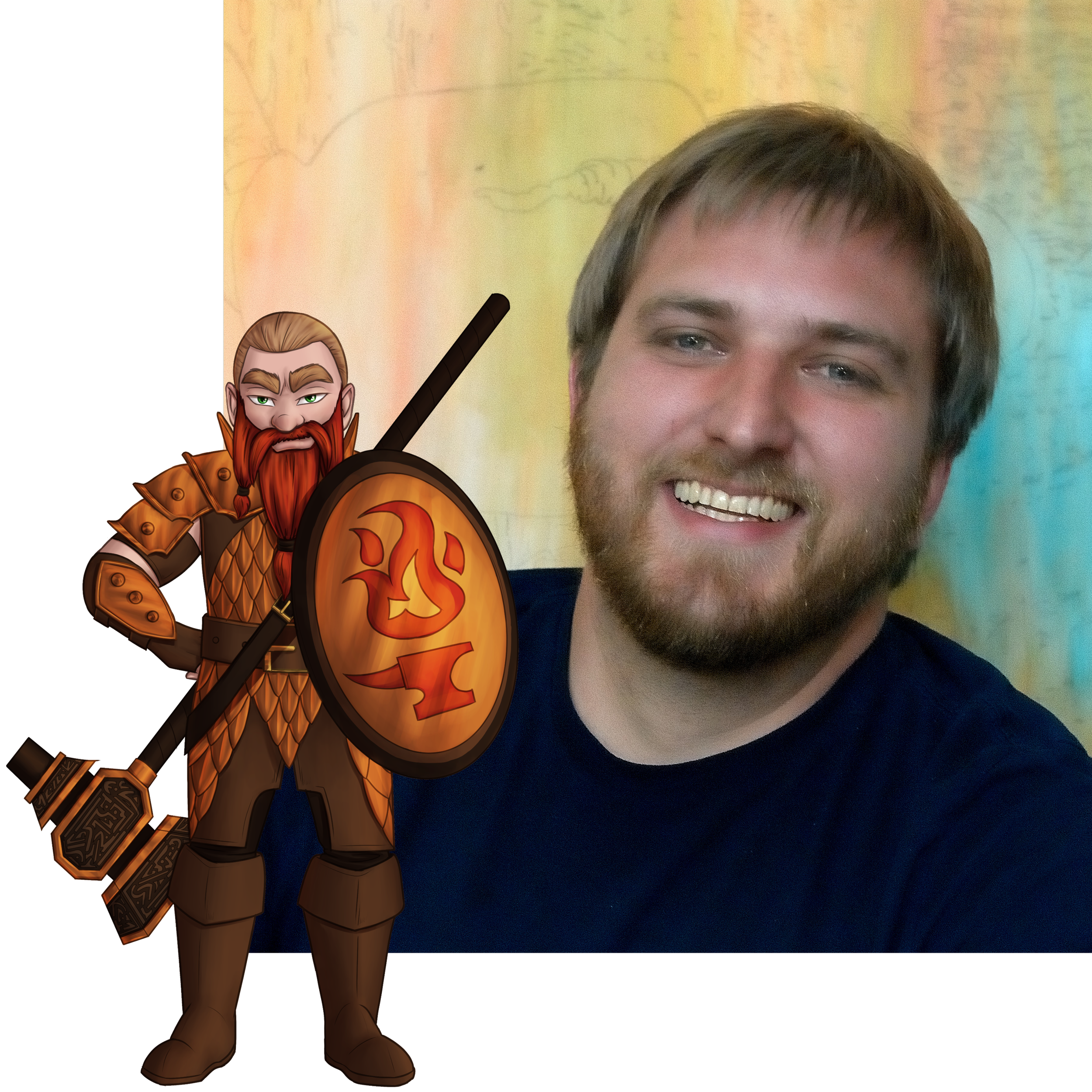 The IT field is made easier for countless luddites due to the efforts of Kenton, who plays the dwarven Cleric, Argos Firebeard, a blazing flame in a dark world. Argos is a talented blacksmith as well as a gifted craftsman, often found collaborating with Zemdack on many a project. This worshiper of all things fire wears the word “arsonist” as a title, rather than a charge.